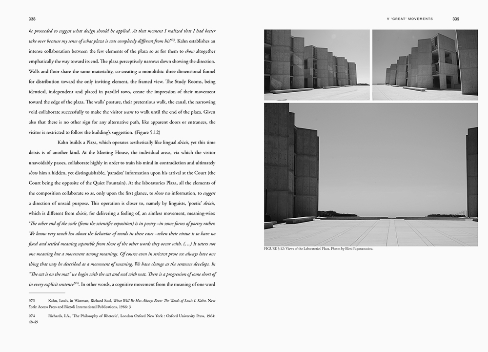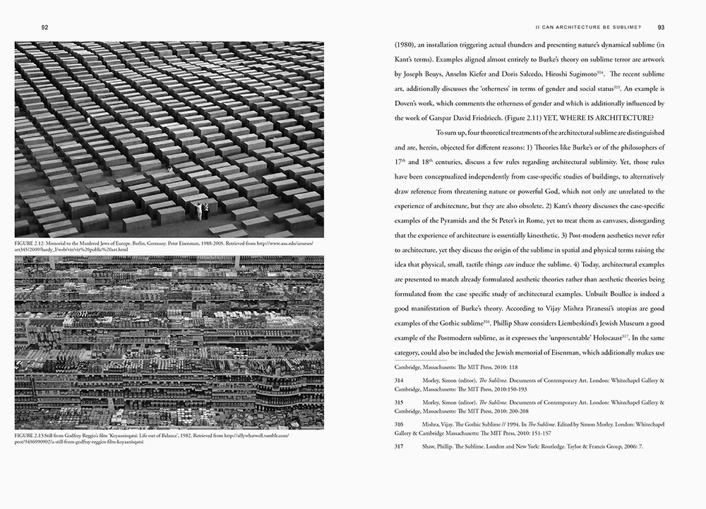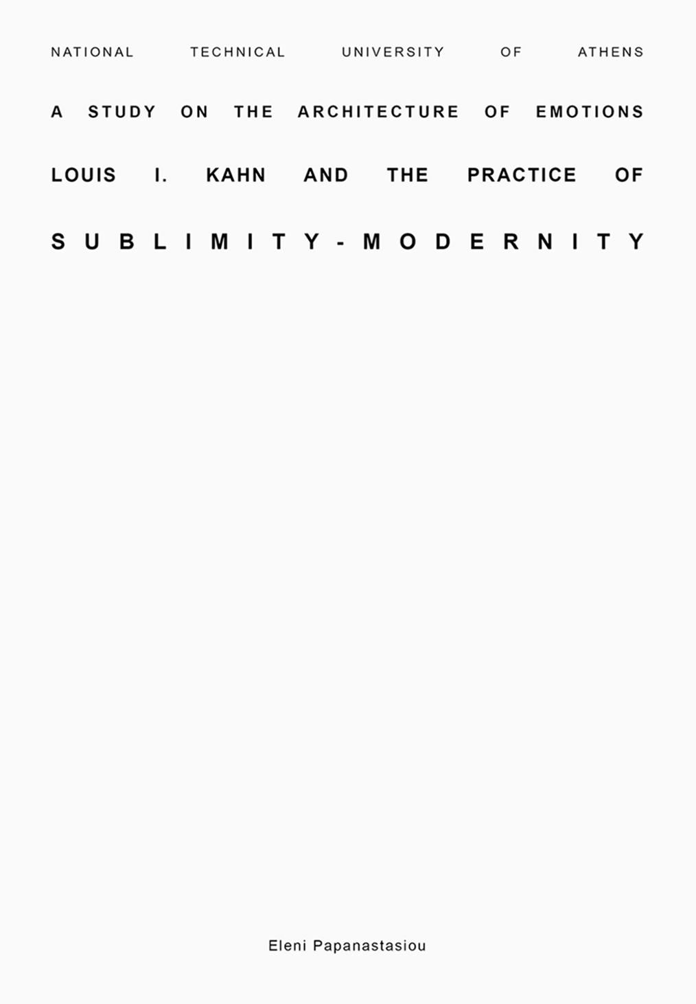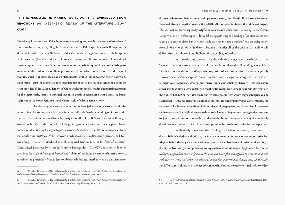 A Study on the Architecture of Emotions. Louis I. Kahn and the Practice of Sublimity – Modernity is a case-specific Monograph on the freshly introduced problem of Architectural Sublimity – Modernity; the medium of architecture is introduced afresh in aesthetics of the sublime; the investigation of Modernity on behalf of architectural theory, is challenged.
