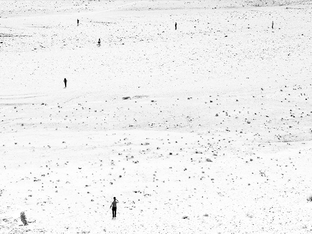 Scraping is the action or sound of something scraping or being scraped; it also means a small amount of something that has been obtained by scraping it from a surface. Landscrapings perform a single environment that is obtained from the contradictory and distant lands of New York and Sahara, canceling their difference. The natural and the man-made, the empty and the busy, the enormous and the tiny, are paired in diptychs that perform an uninterrupted world of silence.